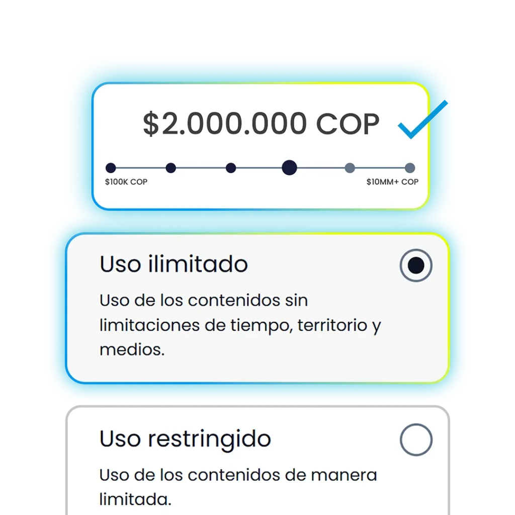 Indica cuánto quieres invertir y las condiciones de uso del contenido.